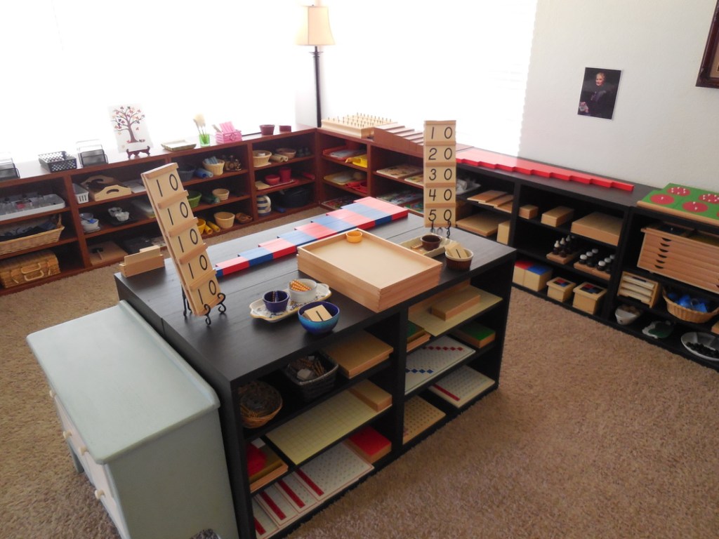 Language: This area is divided into 3 sections– Spoken Language, Written Language and Reading. In Spoken Language, the focus is on learning vocabulary, as the child is now in a sensitive period for the acquisition of language. They will also learn the sounds of letters and phonemes. With this knowledge behind them, the children rapidly enter the area of Written Language. Here they concentrate on learning how to write words, phrases and sentences. They practice constructing and diagramming phrases and sentences, which allows them to gather a better understanding of proper syntax and grammar. The child soon begins to read. Short words at first, but advancing quite quickly. Many aspects of language are integrated throughout the classroom.